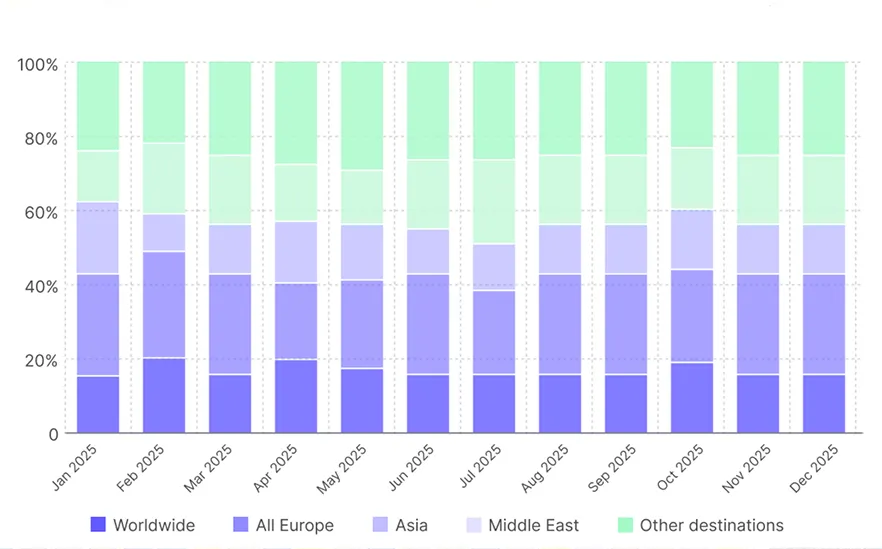 Мы покрываем большинство популярных туристических и бизнес‑направлений, включая локальные, региональные и глобальные планы.