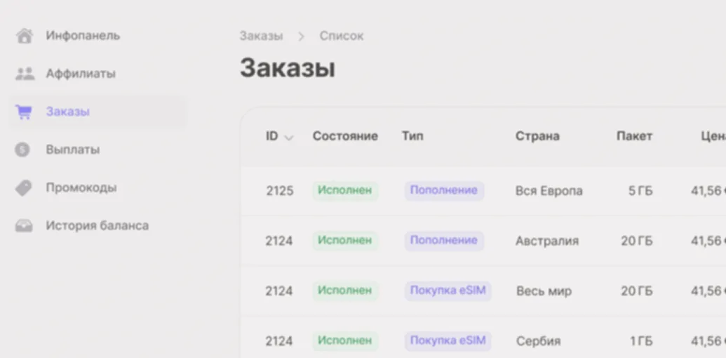 Через API вы получаете доступ к тарифам, заказам, выдаче eSIM, статусам и пополнениям. Это даёт максимальный контроль над логикой продаж и пользовательским сценарием.